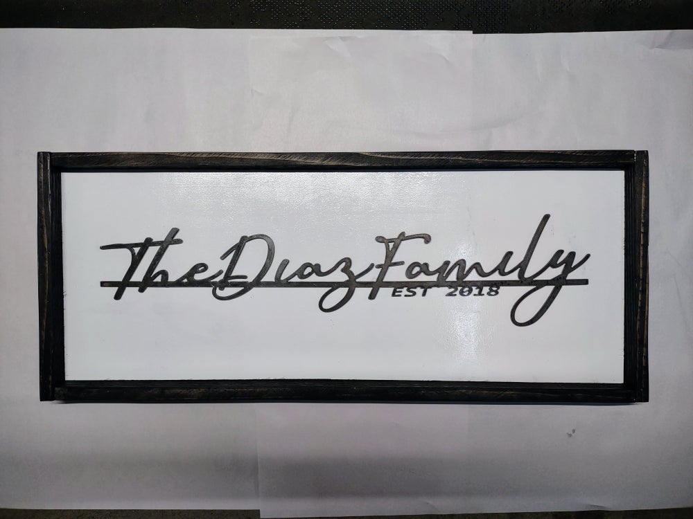 Our steel family name sign can be for indoor or outdoor use! All signs are made in house with high quality, strong, durable 1/8th" American made steel. Color options of patina or satin black. Available options include: Steel sign only - patina or powder coated satin black (indoor or outdoor use) Steel sign with wooden backing and frame - color options are white backing with black frame or natural wood backing with black frame (not intended for outdoor use) This steel template reads as pictured "The Diaz Family EST 2018" with a dimension of approximately 23" x 6". Dimensions may vary and use of the word "The" may or may not be included depending on the length of the last name. Any variations such as these will be confirmed with the customer prior to shipping. Please allow 1-3 business days for processing. We do not accept refunds, returns, or cancellations at this time.