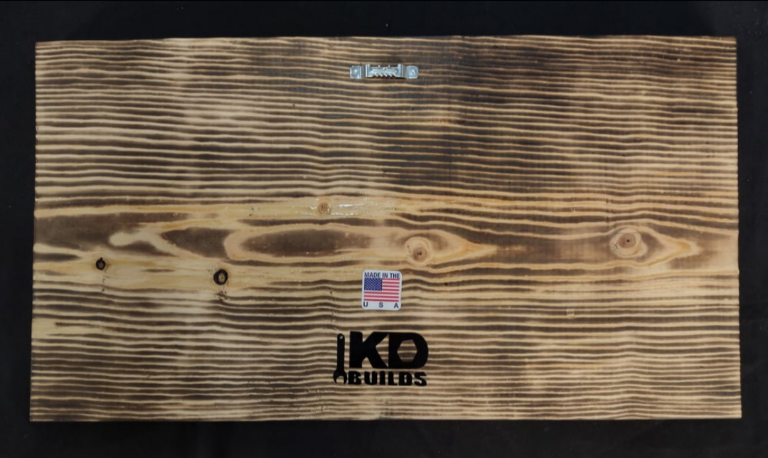 Sawtooth hanger on the backside for easy wall mounting. 18" L x 9 3/4" W x 5/8" H wood that is burned, stained and sprayed with polyurethane seal. Not intended for outdoor use.